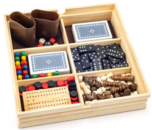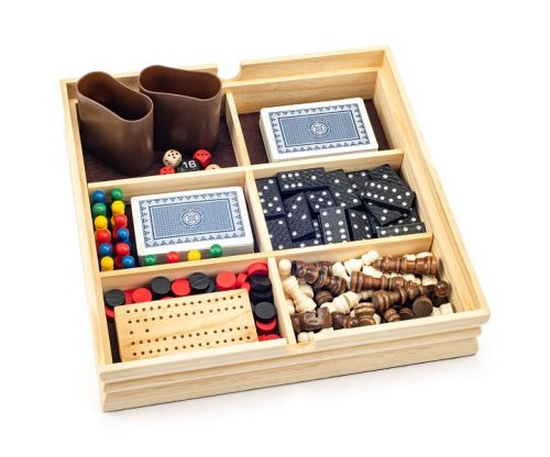 WOODY- Veľký súbor hier je sada mnohých stolných hier v jednej krabici . Nájdete tu šach, dámu, človeče nehnevaj sa, vrchcáby, begamon, mlyn, kamene, domino a karty. Hry sú tu vrátane návodov. Zaobstarajte si tento skladný a zábavný set pre veľa zábavy!