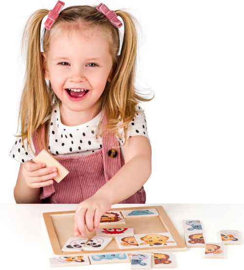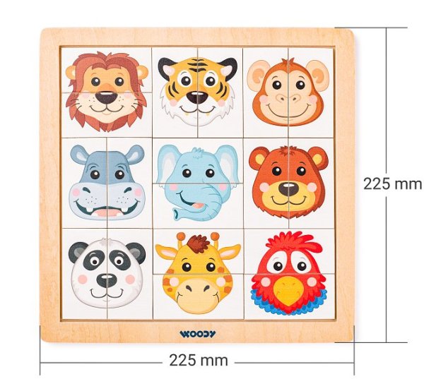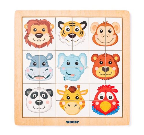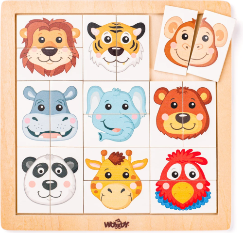 Roztomilé drevené puzzle s motívom zvieracích hláv
