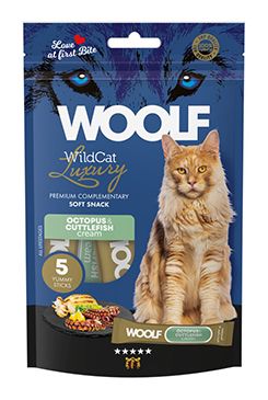 Doplnkové krmivo pre mačky, luxusná krémová maškrta s chobotnicou a sépiou.