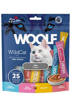 Každé balenie obsahuje 25 lahodných tyčiniek s hmotnosťou 14 gramov. Zloženie je 100% prírodné. Receptúra obsahuje vybrané hlavné ingrediencie s kuracou pečeňou, aby bola odmena chutná a výživná. Všetky maškrty Woolf sú balené bez chemických prísad, konzervantov a farbív. Ideálna ako spestrenie každodennej stravy a lahodná odmena pre vaše mačky.