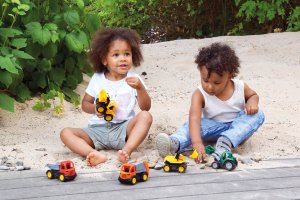 Traktor vyrobený z odolného ABS plastu s vysoko kvalitnými pogumovanými kolesami. 4mm pozinkované oceľové osi. Veľkosť 14 cm