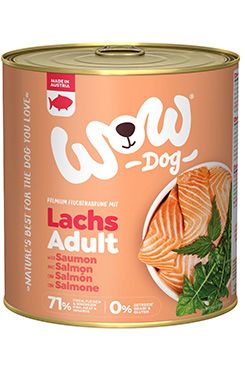 WOW Losos s paradajkami je kompletné mokré krmivo pre dospelé psy všetkých plemien so 71% obsahom mäsa a vnútorností od popredného rakúskeho výrobcu. Mäso je doplnené zeleninou, bylinkami z Álp a vysoko kvalitným ľanovým olejom. Konzervy sú ručne plnené v rodinnej rakúskej firme z miestnych, väčšinou alpských, surovín zo zdravej prírody.