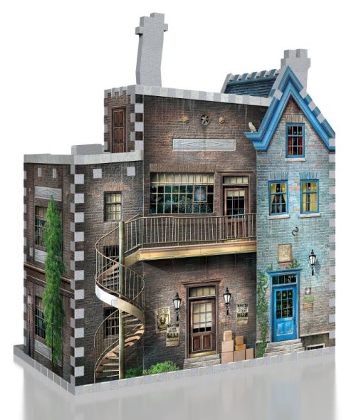 Poskladajte si Obchod s paličkami pána Oliwandera a obchodík s autentickými písacími potrebami a výrobkami, ako sú perové brká, atramenty a inkwelly, záložky, žurnály, pergamenový papier, pečať, písacie potreby a pohľadnice. Táto úžasná replika je vyrobená z 295 dielikov a poteší každého milovníka skladania a čarovného sveta Harryho Pottera. Do stavby sa môže zapojiť celá rodina, výsledok rozhodne stojí za to! Roztrieďte, zložte a vytvorte 3D model. Trojrozmerné puzzle WREBBIT kombinuje výzvu a zážitok. Puzzle sa skladá podľa referenčných obrázkov na krabici a čiernobieleho obrázkového návodu. Vďaka dômyselne navrhnutému tvaru a hrúbke dielikov drží pri sebe bez nutnosti lepenia.