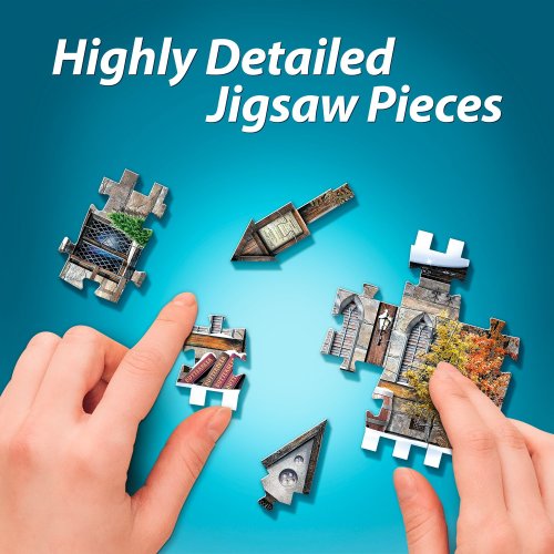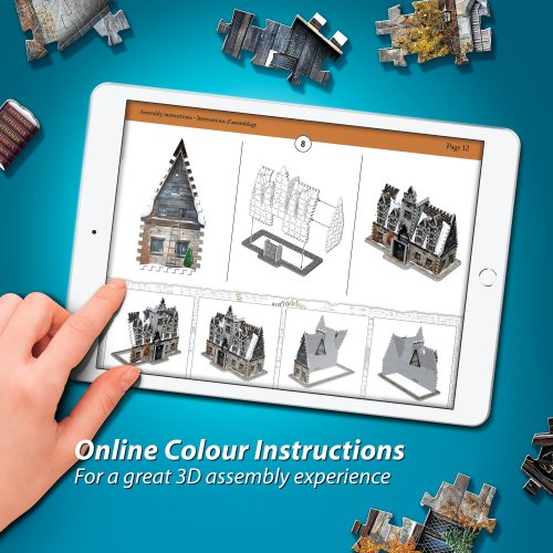 Toto 3D puzzle je možné spojiť s ďalšími modelmi, pomocou ktorých si vytvoríte časť Priečne ulice. Poznámka: Dieliky označené červenými bodkami boli nevyhnutné iba pre výrobu, nie sú však súčasťou samotného 3D puzzle. Môžete ich preto z krabice rovno vytriediť, odložiť nabok a uschovať si ich až do dokončenia skladačky. Prečo? Pretože počas triedenia aj to najbystrejšie oko prehliadne správny dielik, ktorý omylom skončí medzi červeno bodkovanými. Rozmer zloženého puzzle cca 31 x 16,5 x 30,5 cm