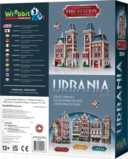 Postavte si vlastné mestečko so štýlovými budovami! Poskladajte si budovu hasičskej stanice, jednu zo štyroch častí z kolekcie Urbania od kanadského výrobcu Wrebbit. Vytvorte si vlastnú mestskú časť, ktorá sa stane nevšedným doplnkom spálne, obývacej izby aj kancelárie. Roztrieďte, zložte a vytvorte 3D model. Trojrozmerné puzzle WREBBIT kombinuje výzvu a zážitok. Puzzle sa skladá podľa referenčných obrázkov na krabici a čiernobieleho obrázkového návodu. Vďaka dômyselne navrhnutému tvaru a hrúbke dielikov drží pri sebe bez nutnosti lepenia.