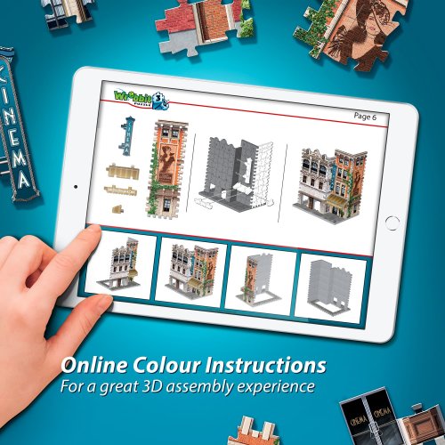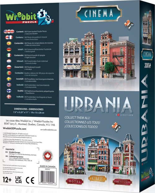 Postavte si vlastné mestečko so štýlovými budovami! Poskladajte si budovu kina, jednu zo štyroch častí z kolekcie Urbania od kanadského výrobcu Wrebbit. Roztrieďte, zložte a vytvorte 3D model. Trojrozmerné puzzle WREBBIT kombinuje výzvu a zážitok. Puzzle sa skladá podľa referenčných obrázkov na krabici a čiernobieleho obrázkového návodu. Vďaka dômyselne navrhnutému tvaru a hrúbke dielikov drží pri sebe bez nutnosti lepenia.