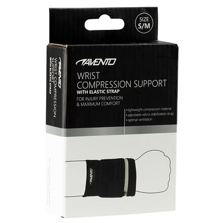 Kompresná zápästná bandáž Avento Wrist 44SA poskytuje extra podporu zápästia pri športe alebo pri rekonvalescencii po úraze. Bandáž na zápästie pomáha predchádzať a zotavovať sa zo (športových) zranení. Výstuha zápästia ponúka okrem podpory aj kompresiu okolo zápästia, ktorá znižuje bolesť pri cvičení. Bandáž je vyrobená z elastického a priedušného materiálu, vďaka ktorému sa ľahko nasadzuje, rýchlo odvádza pot a nezadržuje vlhkosť a poskytuje tak extra pohodlie pri nosení. Ortézu na zápästie je možné navyše prať v práčke a predáva sa po jednom kuse. Veľkosť - obvod zápästia S/M - 15 až 18 cm L/XL - 17 až 21 cm Parametre: - materiál: nylon, latex - mäkký a ľahký kompresný materiál - s nastaviteľným stabilizačným popruhom na suchý zips - pasuje na ľavú aj pravú ruku Poznámka : Bandáž na zápästie Avento podporu bolestivým, slabým, stuhnutým alebo poraneným kĺbom zápästia. Toto je preventívna podporná položka a NIE JE to lekárska ortéza. Predíďte zbytočnej záťaži a možnému poškodeniu vášho tela. Pred začatím namáhavej fyzickej aktivity sa poraďte s lekárom, najmä ak máte nejaké fyzické obmedzenie alebo ochorenie.