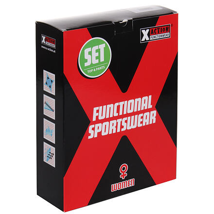 Sada dámskeho funkčného oblečenia X-action WOMEN ponúka vysokú úroveň komfortu pre celé telo pri všetkých športových aktivitách, pri ktorých sa nezaobídete bez trička s dlhým rukávom a dlhých nohavíc. Funkčný set X-action WOMEN sa používa ako prvá, základná vrstva oblečenia priamo na telo. O to viac každá užívateľka ocení jeho ľahkosť, optimálnu elasticitu, vysokú priedušnosť, tepelnú reguláciu, rýchle schnutie, klimatické zóny, ploché švy, komfortné manžety na rukávoch aj nohaviciach a celkový ergonomický strih. Funkčná bielizeň X-action WOMEN je vyrobená z 90% polyamidu a 10% elastanu teda kombinovaného materiálu, ktorý je veľmi príjemný na telo, udrží optimálnu telesnú teplotu pri každej aktivite, má dlhotrvajúcu životnosť a zamedzuje nepríjemnému zápachu. Okrem maximálnych úžitkových vlastností ponúka teraz tento set funkčného trička a funkčných nohavíc aj fantastickú X-akčnú cenu, vďaka ktorej už nenájdete dôvod, prečo si dámsky funkčný set X-action WOMEN neobstarať.