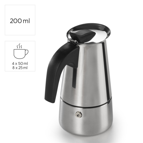 • nádoba na vodu s objemom 200 ml; ideálny pre 4 šálky po 50 ml alebo 8 espresso káv po 25 ml
