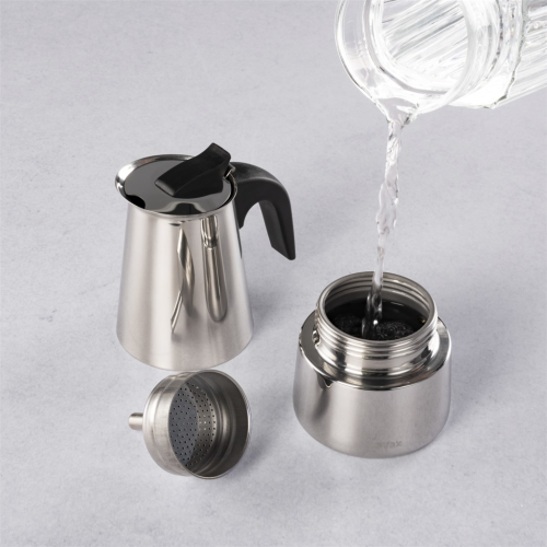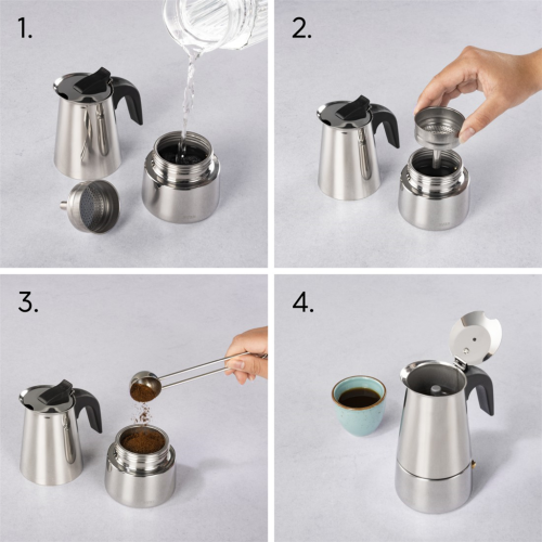 - klasická talianska príprava kávy (espresso) - kompaktná moka kanvička vhodná na použitie na všetkých typoch sporákov, vrátane indukčných varných dosiek - elegantné prevedenie z nerezovej ocele - nádoba na vodu …