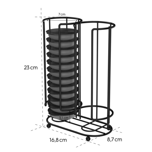 • elegantný drôtený stojan na prehľadné uloženie a usporiadanie kávových kapsúl