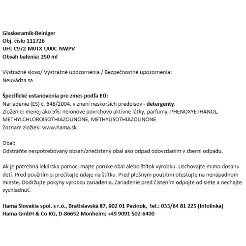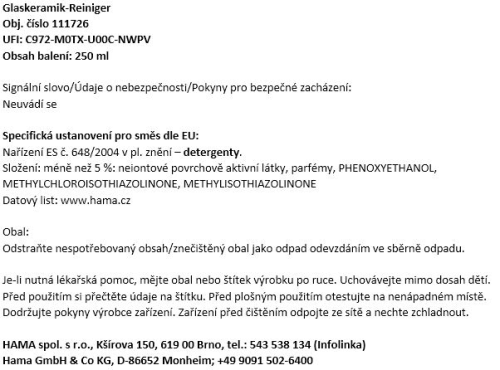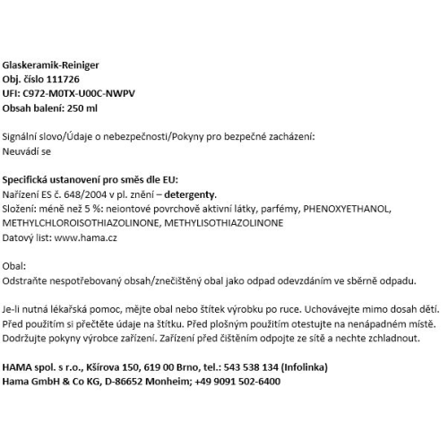 Seznam varování o bezpečnosti čisticích prostředků vychází z požadavků nařízení (EU) 2023/988 o obecné bezpečnosti výrobků (GPSR): 1. Riziko podráždění pokožky a očí: * Vyhněte se kontaktu s kůží a očima. V případě kontaktu okamžitě omyjte velkým množstvím vody. * Během používání používejte ochranné rukavice a ochranné brýle. 2. Riziko otravy: * Uchovávejte čisticí prostředky mimo dosah dětí a zvířat. * Nemíchejte různé čisticí prostředky, protože to může vést ke vzniku nebezpečných plynů. * Zajistěte dostatečnou ventilaci během používání. 3. Nebezpečí požáru a výbuchu: * Nepoužívejte čisticí prostředky v blízkosti otevřeného ohně nebo zdrojů tepla. * Neskladujte hořlavé čisticí prostředky na slunných místech nebo v blízkosti zdrojů tepla. 4. Riziko poškození povrchu: * Před použitím čisticího prostředku na jemném povrchu zkontrolujte jeho účinek na neviditelném místě. * Nepoužívejte čisticí prostředky na povrchy, pro které nejsou určeny. 5. Obecná upozornění: * Vždy dodržujte návod k použití uvedený na štítku výrobku. * Nepřelévejte čisticí prostředky do jiných nádob, protože to může způsobit chybu a nebezpečí. * Po použití si důkladně umyjte ruce. 6. Postup při nehodě: * V případě požití okamžitě kontaktujte svého lékaře nebo centrum pro otravu. Nevyvolávejte zvracení bez doporučení lékaře. * V případě vdechování výparů vyjděte na čerstvý vzduch. * Pokud se objeví alergická reakce, okamžitě přestaňte přípravek používat a vyhledejte lékaře.