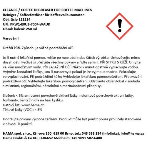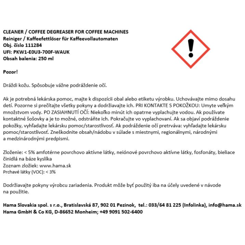 Tento prípravok nie je určený na čistenie mliečnych systémov ani kávových mlynčekov v kávovaroch alebo samostatných. Pre tieto systémy a zariadenia treba použiť vhodné čistiace prostriedky, napr. 111282 pre mliečne systémy, 111759 pre mlynčeky.
