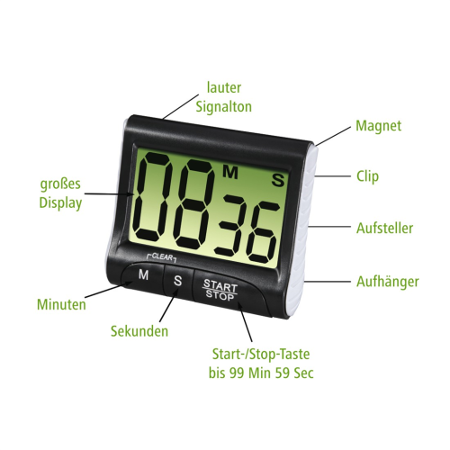 Xavax Countdown, digitálna kuchynská minútka, čierna