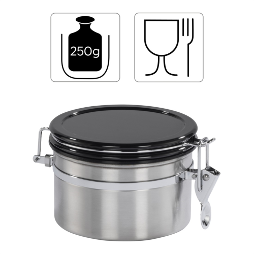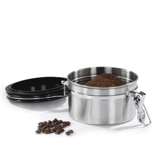 - nádoba na správne skladovanie kávy, vzduchotesná a nepriepustná pre arómu - pre 250 g mletej kávy alebo celých kávových zŕn - vhodná aj pre čaj, kakao, cukor, múku, müsli, sušienky, korenie, cestoviny, oriešky …