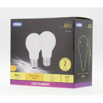 Xavax LED Filament žiarovka, E27, 806 lm (nahrádza 60 W), teplá biela, matná, 2 ks v krabičke