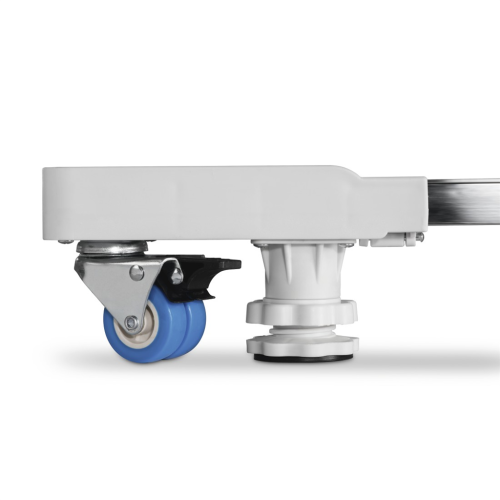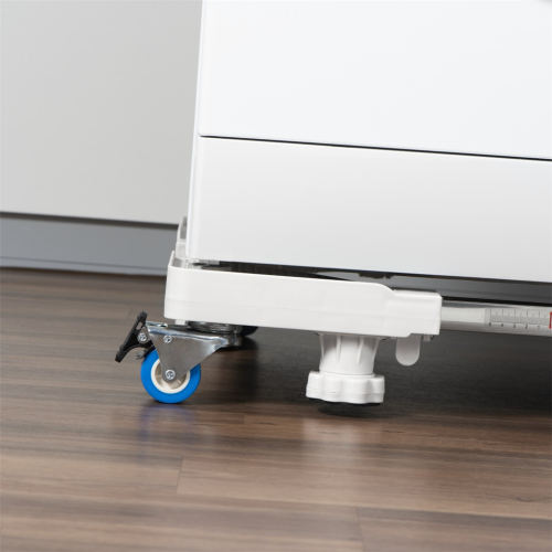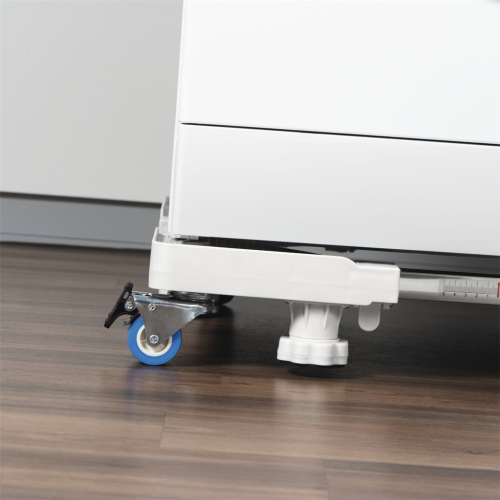 • štyri otočné kolieska, každé s brzdou, pre pohodlné presúvanie a bezpečné postavenie spotrebiča, takže spotrebič môžete používať aj keď je umiestnený na podstavci