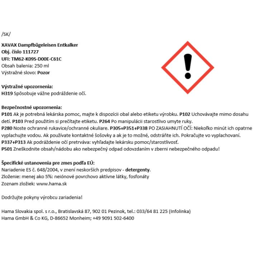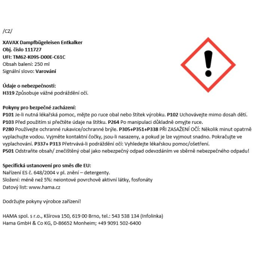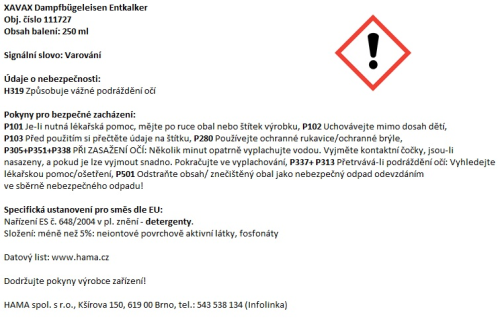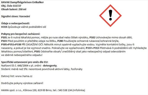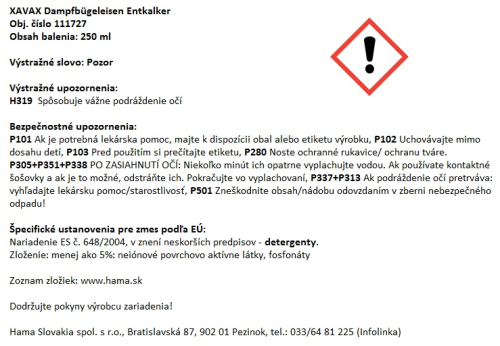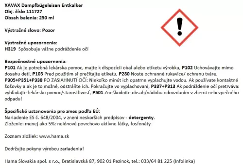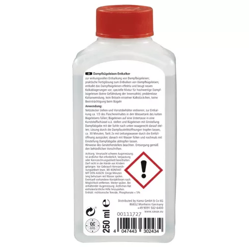 Xavax odvápňovací prípravok pre naparovacie žehličky pre efektívne odvápnenie naparovacích žehličiek, hotový roztok na okamžité použitie, odstraňuje vodný kameň a zároveň pôsobí ako prevencia nových usadenín.