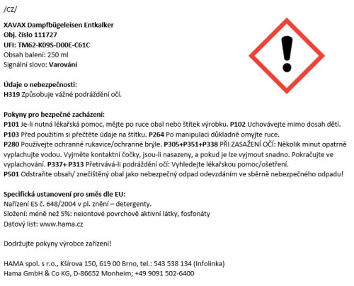 Xavax odvápňovací prípravok pre naparovacie žehličky, 250 ml