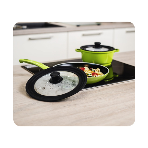 • elastický silikónový okraj dokonale priľne k okraju hrnca/panvice a zabráni tak nadmernej strate tepla