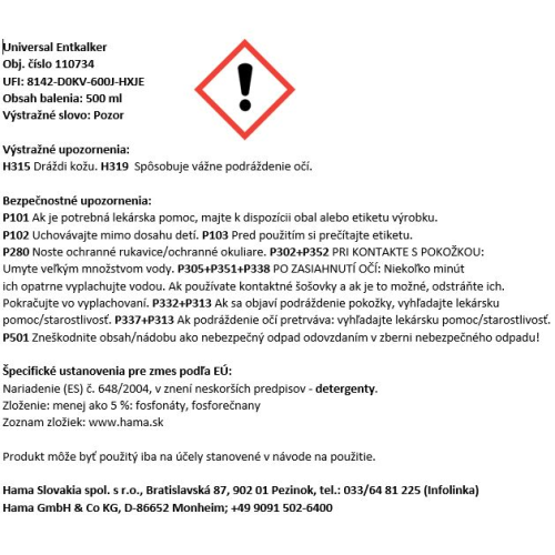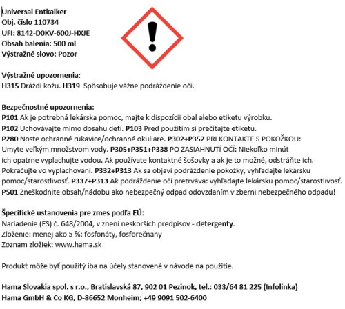 Xavax univerzálny odstraňovač vodného kameňa, ľahko a rýchlo odstraňuje vápenné usadeniny z rôznych typov domácich spotrebičov, pre varné kanvice, hrnce, sprchové hlavice, vodovodné kohútiky, žehliace …
