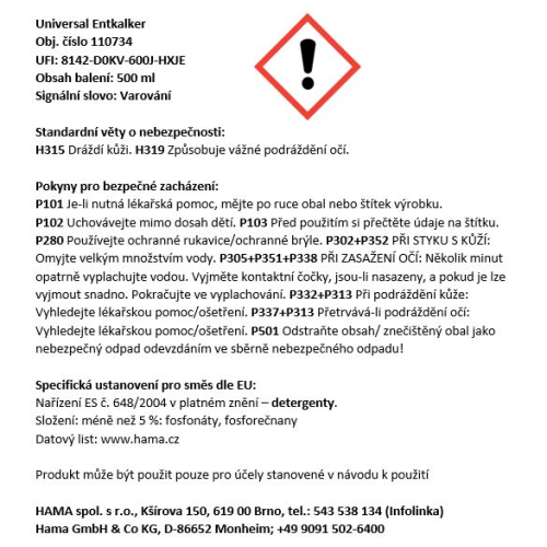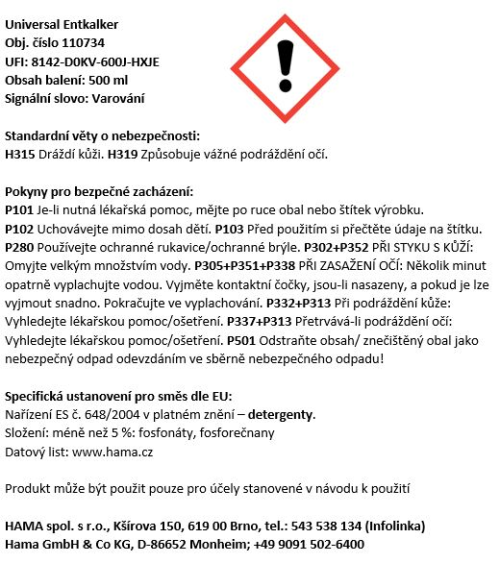 • ľahko a rýchlo odstraňuje vápenné usadeniny z rôznych typov domácich spotrebičov