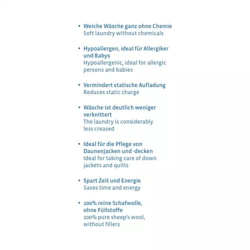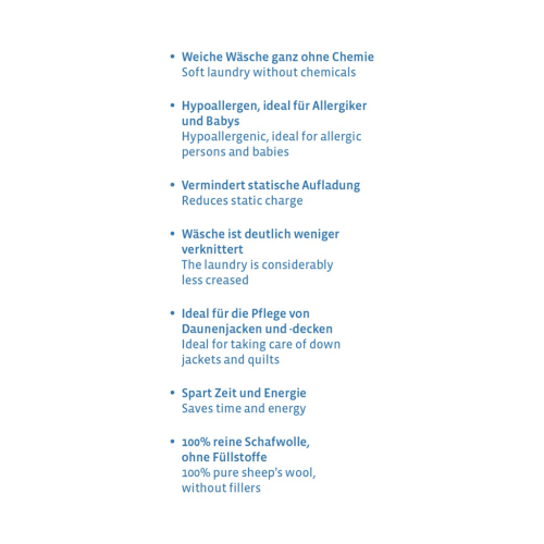 • mäkký vlnený materiál pre menej hluku v porovnaní s guľami z umelej hmoty