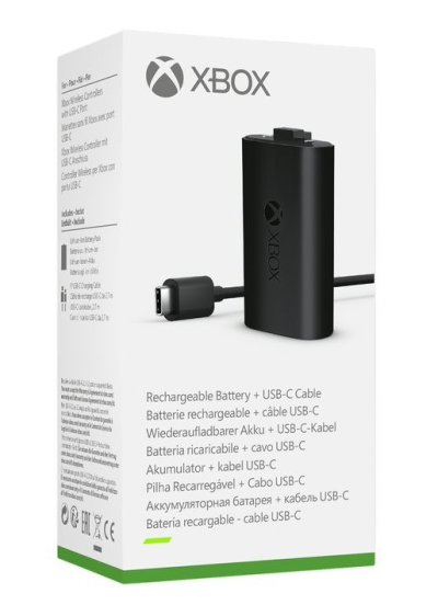 Dobíjacia batéria Xbox + USB-C kábel , plné nabitie za 4 hodiny, nabíja sa počas hrania aj v stand-by režime, až 30 hodín prevádzky na jedno nabitie, kompatibilný iba s originálnymi gamepadmi Xbox Wireless Controller s USB-C konektorom.