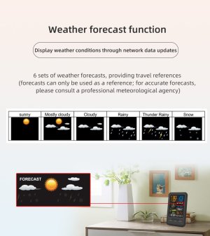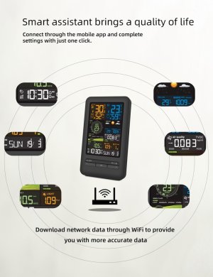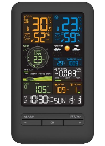 Riadiaca jednotka sa pripája k Wi-Fi 2,4 GHz a umožňuje diaľkové sledovanie a ovládanie cez aplikáciu Tuya Smart. Stanica je plne funkčná aj bez pripojenia k internetu. Vnútorná jednotka obsahuje synchronizované hodiny, budík a automatické stmievanie displeja.