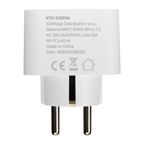 Múdra Wi-Fi zásuvka slúžiaca na meranie príkonu pripojených zariadení a ich zapínanie či vypínanie . Zásuvka funguje s aplikáciou Tuya Smart a podporuje aj aplikácie tretích strán Alexa hlasový asistent a Google domáci asistent.