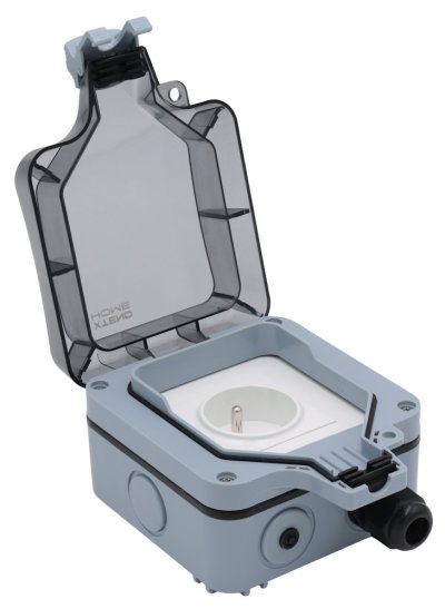 Zásuvka je vodotesná a prachotesná , vrátane káblovej priechodky PG. Môžete ju tak umiestniť kdekoľvek na záhrade či v skleníku bez obáv, že by došlo k skratu pri daždi či zalievaní.