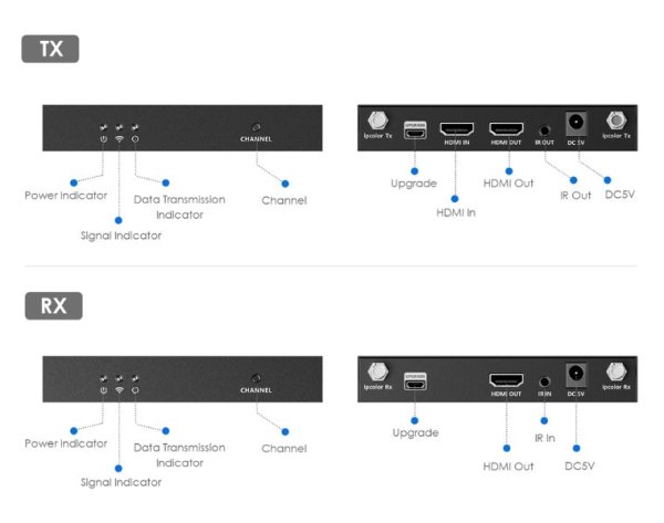 Bezdrôtový extender HDMI podporujúci prenos rozlíšenia až 4K pri 60 Hz , ktorý obsahuje vysielač a prijímač. Technológia ipcolor STREAM umožňuje prenos s vysokým rozlíšením a nízkou latenciou. Založené na bezdrôtovom frekvenčnom pásme 5G , so stabilnou ochranou proti rušeniu a bezpečnostným výkonom. Podporuje bezdrôtový prenos 1:1 a prenosová vzdialenosť môže dosiahnuť 50 metrov , čím účinne rieši problémy spôsobené komplikovanou kabelážou. Ideálne riešenie bezdrôtového prenosu videa pre videokonferencie, domácu zábavu, multimediálne vzdelávanie atď.