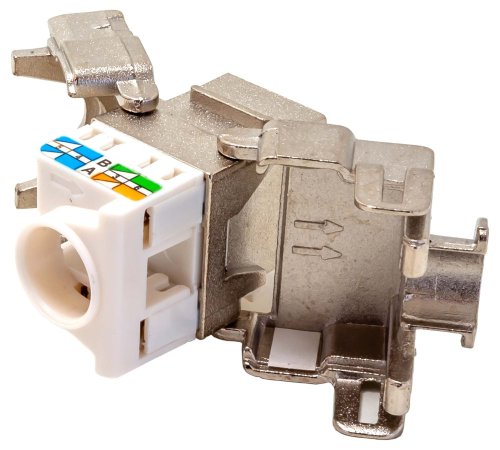 Vysoko kvalitný tienený keystone Cat5e , farebná schéma T568A alebo T568B. Zaklapávacia zozadu (pre inštaláciu netreba nástrojov). Keystony sú určené na osadenie do panelu alebo zásuvky.