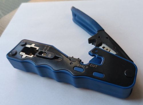 Krimpovacie masívne kliešte malých rozmerov, konektory (Pass Through UTP) RJ-45 Cat6, Cat5e, Cat7 aj nový typ RJ-45 EZ, systému odizoluj, zasuň, zacvakni a orež/urež. Je možné používať aj na starý typ RJ-45, UTP/STP.