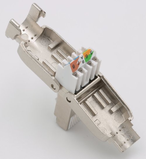 Tienený konektor RJ-45 kategórie Cat6A je vhodný na zakončenie káblov štruktúrovanej kabeláže.