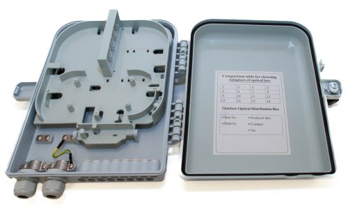 Vodotesný nástenný plastový rozvádzač. 2 otvory pre vstupný/výstupný kábel, 16 výstupných portov pre napojenie koncových vývodov.