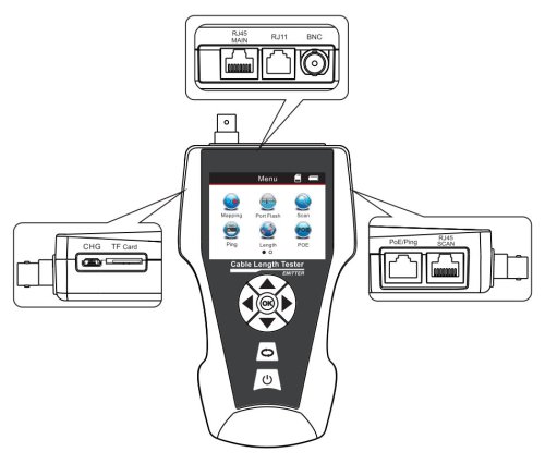 Pokročilý tester na testovanie a diagnostiku rôznych typov káblov/vedení . Využíva technológiu TDR (Time Domain Reflectometre) na presnú lokalizáciu a identifikáciu závad vo vedení. Zariadenie je vybavené veľkým LCD displejom, ktorý zobrazuje všetky patričné informácie a podporuje viacjazyčné nastavenie. Okrem toho je vybavený vstavaným tónovým generátorom a funkciou vyhľadávania portov, takže je ideálny na testovanie sieťových káblov, telefónnych liniek a videokáblov.