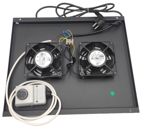 Stropný/podlahový ventilátor do stojanových rozvádzačov radu ECO, 2 ventilátory s priemerom 12 cm. Termostatický spínač s nastaviteľnou teplotou.