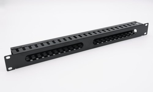 19" celokovový vyväzovací panel vhodný pre voľné uchytenie veľkého množstva káblov. Vyrábaný je vo variante 1U a je vybavený krytom káblov.