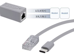 Tento PoE splitter umožňuje napájať zariadenie s USB-C konektorom priamo z PoE siete. Zariadenie prijíma napätie DC 44–57 V z PoE zdroja kompatibilného so štandardmi IEEE 802.3at/af a prevádza ho na stabilných DC 5 V s prúdom 2,4 A (12 W) . Ideálne riešenie pre napájanie IP bezpečnostných kamier, VoIP telefónov, bezdrôtových prístupových bodov a ďalších sieťových zariadení s USB-C napájaním.