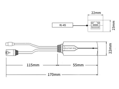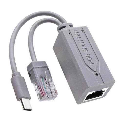 Splitter disponuje tromi portami: RJ-45 PoE vstup pre príjem dát a napájania, RJ-45 LAN výstup pre dátové pripojenie a USB-C výstup pre napájanie koncového zariadenia. Dátový prenos prebieha rýchlosťou až 10/100 Mbps s maximálnym dosahom 100 metrov po sieťovom kábli Cat5E alebo vyšším.