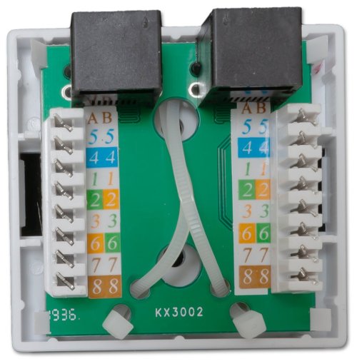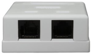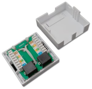 Netienená zásuvka na stenu s 2 konektormi RJ-45, narážacie kontakty.