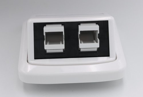 Zásuvka pre 2× SC adaptér, bez optických adaptérov. Jedná sa o sadu komponentov, zásuvka nie je zložená dohromady.