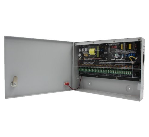 Stabilizovaný napájací zdroj pre šestnásť spotrebičov, nastaviteľné napätie DC 11-14 V, každý port max. 1,5 A. Celkový výstupný prúd 12 A. Skrinka na stenu s inštalovaným PCB, káblové priechodky. Pripojenie káblov k internej svorkovnici. Ochrana proti skratu PTC termistory, 1,5 A na port. LED signalizácia funkčnosti portov.