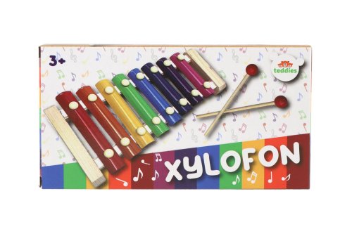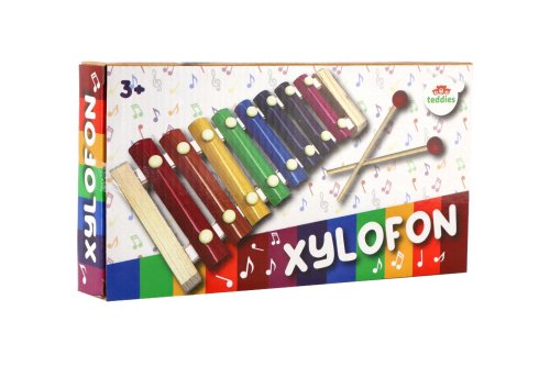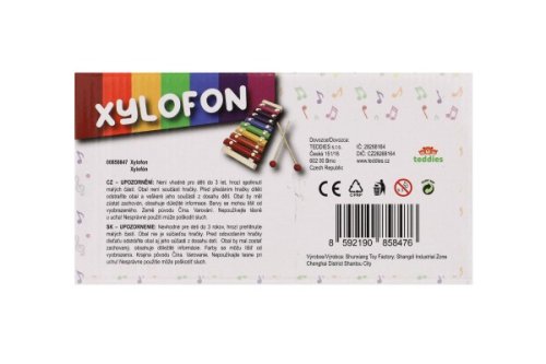 Krásne farebný detský xylofón vyrobený z kombinácie dreva a kovových rôzne veľkých dosiek, vďaka ktorým sa dieťa učí jednotlivé tóny a učí sa hrať jednoduché melódie skladieb pomocou dvoch paličiek. Hračka rozvíja zmysly pre možnosť hudobnej tvorby a pre rytmus. Veľkosť xylofónu: 24 cm Rozmer balenia: 25 x 13 x 4 cm Vhodné pre deti od 3 rokov