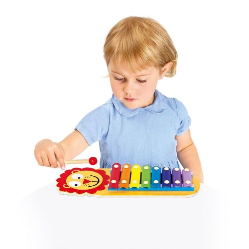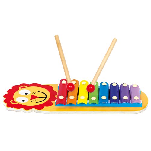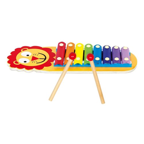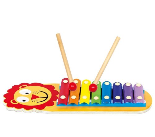 Detský xylofón s motívom levíčka. 3-dielna sada s 8 kovovými zvukovými plátmi, ktoré ponúkajú hranie v plnom rozsahu. Xylofón ponúka deťom príležitosť zoznámiť sa so základmi hudby a rozvíjať svoj hudobný talent. Je tak ideálnou hračkou pre prvé detské hudobné kroky.