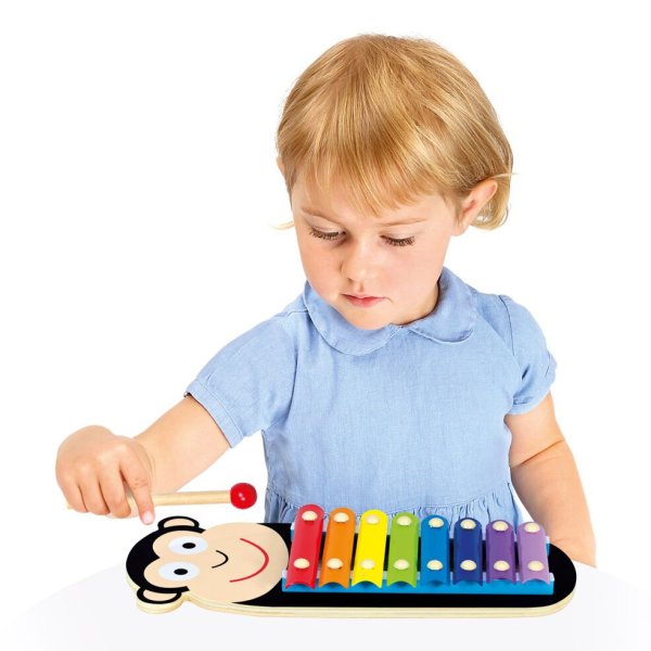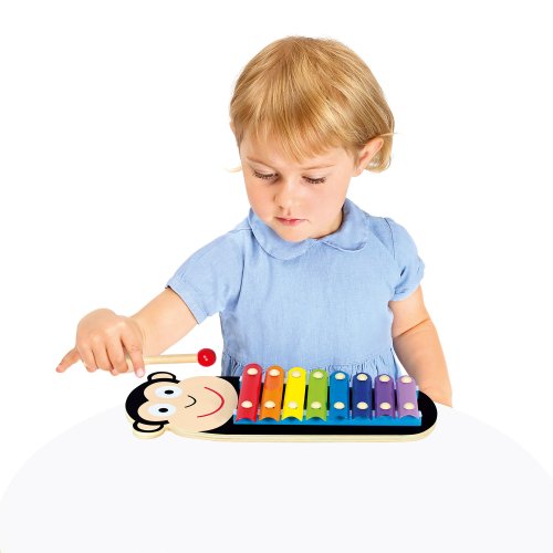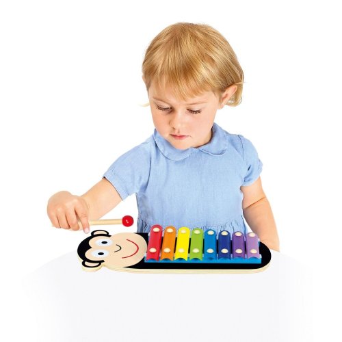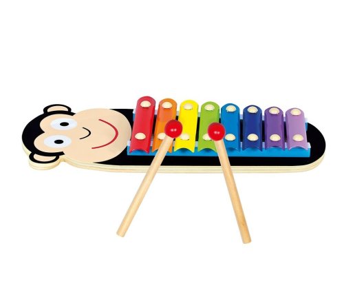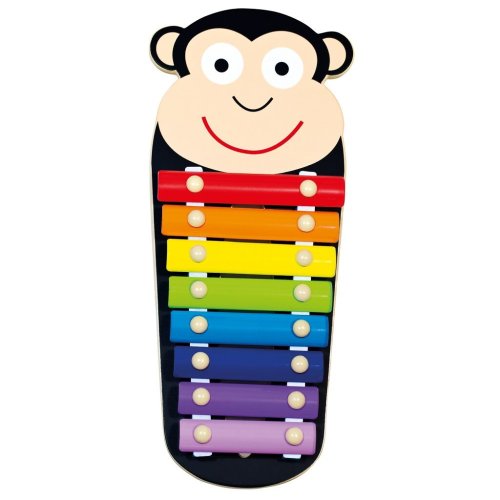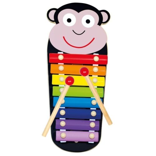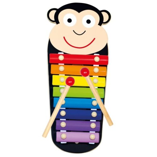 Detský xylofón s motívom opičky. 3-dielna sada s 8 kovovými zvukovými plátmi, ktoré ponúkajú hranie v plnom rozsahu. Xylofón ponúka deťom príležitosť zoznámiť sa so základmi hudby a rozvíjať svoj hudobný talent. Je tak ideálnou hračkou pre prvé detské hudobné kroky.