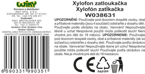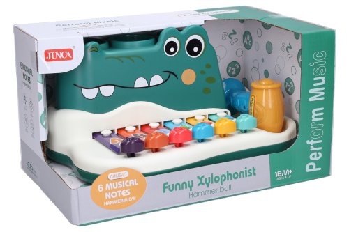 Xylofón zatĺkačka krokodíl. Rozmery 25x16x12 cm. Kladivko a 3 loptičky súčasťou.