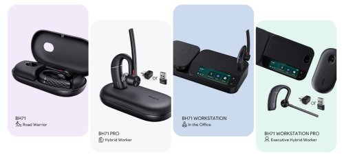 Bezdrôtový systém Bluetooth Business Headset BH71 Mono poskytuje kvalitu zvuku s vysokým rozlíšením bez ohľadu na to, či ste v aute, vo vlaku alebo v kancelárii, či sa pripojíte k vášmu smartfónu, stolnému telefónu alebo PC. Vďaka technológii potlačenia šumu pomocou 4-mikrofónneho lúča budete vždy jasne počuť. BH71 tiež poskytuje nastaviteľný háčik na ucho pre pohodlné nosenie a háčik môžete ľahko vytiahnuť, aby čo najlepšie sedel vášmu uchu. Či už ste na cestách alebo v kancelárii, BH71 môže zaručiť 10 hodín hovoru, aby bolo zaistené vaše celodenné používanie. A čo viac, s prenosným nabíjacím puzdrom BH71 Pro a BH71 Workstation Pro môže poskytnúť 20 hodín dlhšej výdrže batérie a dokonca pokryť celý týždeň používania. Modely BH71 Workstation a BH71 Workstation Pro majú stanicu, ktorá sa môže pripojiť k vášmu stolnému telefónu, PC a smartfónu súčasne a poskytnúť vám plnohodnotnú komunikáciu UC. Stanica má tiež 3-palcový dotykový displej, hlasný odposluch, 3 porty USB 3.0 a bezdrôtovú nabíjačku Qi pre váš smartphone, vďaka ktorej bude vaša kancelária vyzerať štýlovo a pekne.