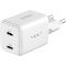 Dva výstupné USB C porty umožňujú napájať až dve zariadenia naraz. Pri zapojení iba jedného USB C portu dosahuje port maximálneho nabíjacieho výkonu až 35 W. Pri zapojení oboch portov v rovnakom čase je maximálny nabíjací výkon portu C1 17W a portu C2 18W. Inovatívna technológia GaN (Gallium Nitride) umožňuje zmenšiť rozmer tela nabíjačky až o 30% a napriek tomu ponúknuť vysoký výstupný výkon až 35W. Vďaka nízkej hmotnosti a kompaktným rozmerom je ideálna na cesty alebo ako náhradná nabíjačka. Pre maximálnu bezpečnosť vás i vášho zariadenia má nabíjačka viacnásobnú ochranu proti prepätiu, preťaženiu, vzplanutiu a skratu.